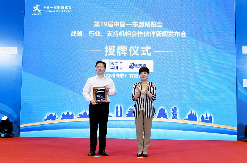 廣西柳工集團有限公司董事、副總裁,柳州肉聯廠有限公司董事長王太平參加授牌儀式,并作為13家中國—東盟博覽會合作伙伴代表之一接受榮譽牌匾。