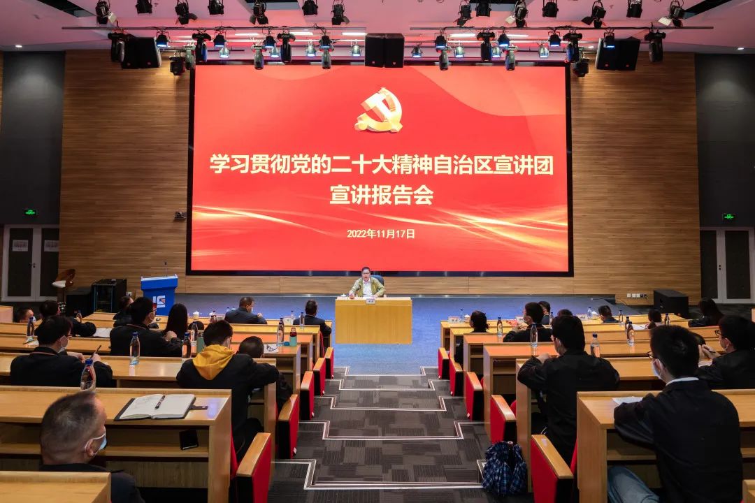 11月17日上午,學(xué)習(xí)貫徹黨的二十大精神自治區(qū)宣講團(tuán)宣講報告會在柳工全球研發(fā)中心召開。自治區(qū)宣講團(tuán)成員,自治區(qū)政府發(fā)展研究中心黨組書記、主任楊叢為柳工集團(tuán)黨員干部宣講黨的二十大精神。廣西柳工集團(tuán)有限公司黨委書記、董事長鄭津主持報告會。